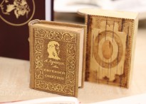 «Пиковая дама» и «Песнь о вещем Олеге», «Медный всадник» и «Маленькие трагедии», «Барышня-крестьянка» и «Руслан и Людмила», «Сказки», «Эпиграммы и миниатюры» – вот только часть названий из этой обширной коллекции! Многотомные сборники избранных произведений, крошечный «Талисман» размером 2х2,5 см. Есть факсимильное издание 1892 года повести «Дубровский»! А «самое задушевное произведение» Пушкина – роман в стихах «Евгений Онегин» – представлен сразу в нескольких изданиях, да каких! Самое ценное – факсимильное воспроизведение романа 1837 года, можно сказать, родоначальник миниатюрных изданий поэта. Оно было выпущено тиражом в 5000 экземпляров и распродано буквально за две недели после трагической гибели Пушкина. А самое красивое издание пушкинианы в миниформате – томик в футляре из настоящей бересты!
