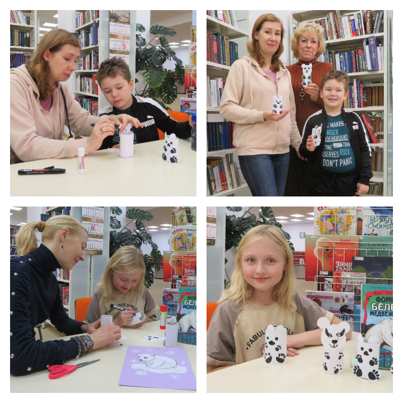 Под руководством библиотекаря дети изготовили из картонных втулок забавных медвежат и очаровательные панно с изображением полярного красавца. Такие поделки можно использовать для украшения интерьера или в качестве подарка.