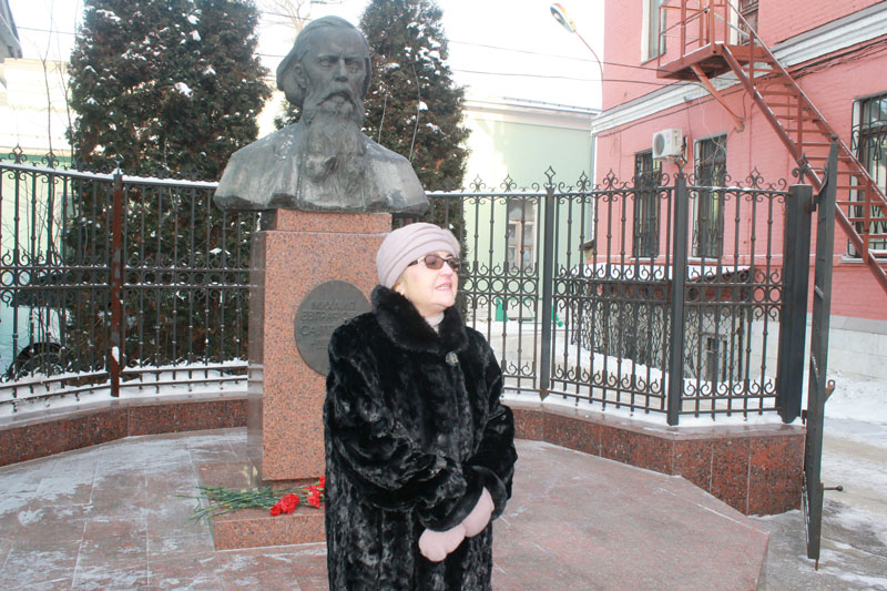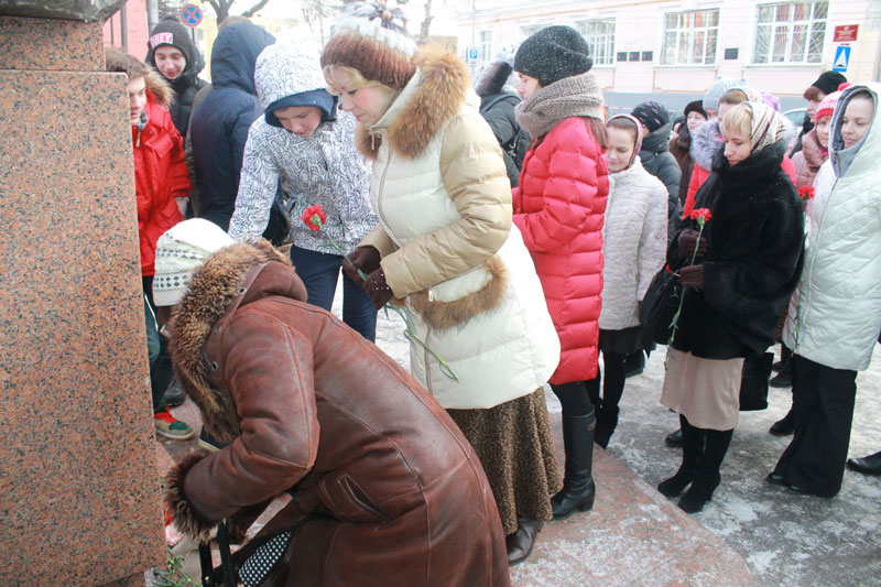 Утро 26 января выдалось морозным и ветреным, но погода не помешала сотрудникам библиотеки им. Горького и старшеклассникам школы №8 собраться у памятника М.Е. Салтыкову-Щедрину.