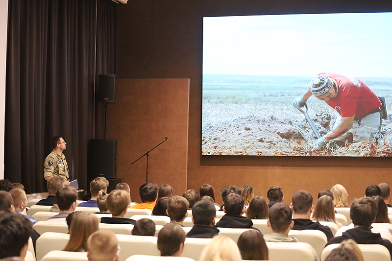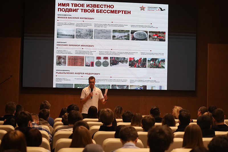 Командир поискового отряда «Ока-Рязань», член общественной палаты Рязанской области Николай Николаевич Стрелков провел беседу с молодежью и рассказал о деятельности организации, которая на протяжении многих лет занимается восстановлением исторической справедливости и увековечиванием памяти воинов, погибших в годы Великой Отечественной войны. Отряд не только осуществляет поисковые работы, но и активно ведет образовательную деятельность, проводя встречи в школах и университетах, рассказывая молодежи о подвиге советских солдат и значении памяти о них.