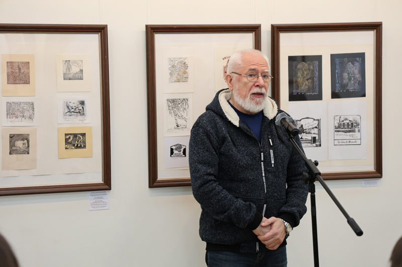 Заслуженный художник РФ, почетный член Всероссийского геральдического общества, почетный гражданин города Рязани Михаил Константинович Шелковенко обратил внимание присутствующих на то, что экслибрисы, представленные на выставке, заслуживают особого внимания – они отличаются по технике, жанру, стилистике, но в основе всех работ лежит уважение и признательность великому гению Сергея Есенина.