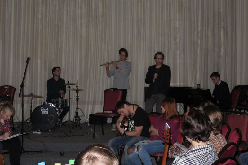 Сергей Поляков вдохновенно спел «Если б не было тебя» из репертуара Джо Дассена. Выступления солистов сменялись дуэтами и трио. Так, на вечере присутствовал талантливый дуэт «Эффект Доплера», в состав которого входят Екатерина Макинтош и Петр Шахватов. Они исполнили песни собственного сочинения. А ребята из ансамбля «Деревянный граммофон» (флейта, губная гармошка, фортепиано, гитара) исполнили кавер-версию на одну из композиций группы Scorpions.