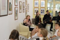 В рамках работы выставки Марианна Щербакова провела для учеников 36 школы г. Рязани «Музыкальную гостиную». Юные гости библиотеки познакомились с книгой Геннадия Цыферова «Тайна запечного сверчка» о детстве Вольфганга Амадея Моцарта.