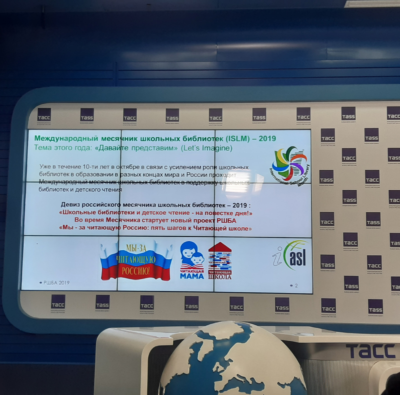 4 октября в информационном агентстве ТАСС состоялась пресс-конференция, посвященная Международному месячнику школьных библиотек (International School Library Month. ISLM–2019) «Мы – за читающую Россию: пять шагов к читающей школе». Тема российского месячника: «Школьные библиотеки и детское чтение – на повестке дня».