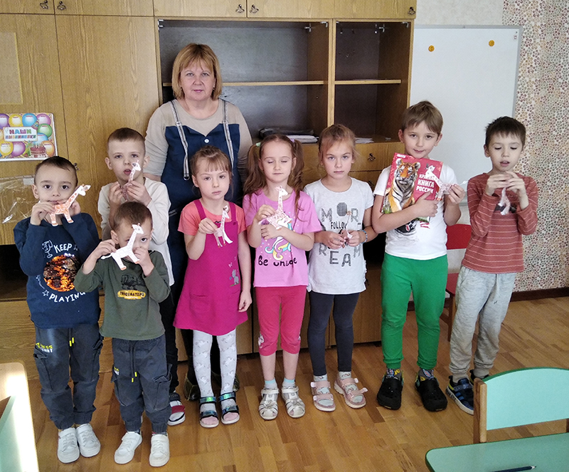 Юные читатели подготовили к мероприятию рисунки животных, обитающих в лесах России, и рассказали о домашних питомцах. Дети поучаствовали в конкурсах, ответили на загадки, а из бумаги сделали жирафа – животное, занесенное в Международную Красную книгу.