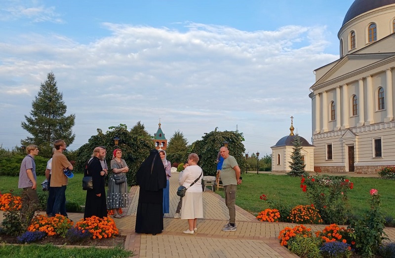 После небольшого перерыва гости и организаторы выставки отправились в экскурсионную поездку по Михайловскому району, посетив памятные места художников Ушаковых – территорию усадьбы Красное, которая ныне, после масштабного восстановления большого комплекса построек и парка, является подворьем Сретенского монастыря со Свято-Серафимовским скитом, Покровский женский монастырь города Михайлова. Восстановленные из руин и небытия церкви и причудливые здания в стиле русской псевдоготики отражались, как в зеркале, на страницах выставочного буклета, в рисунках и живописных полотнах художников.