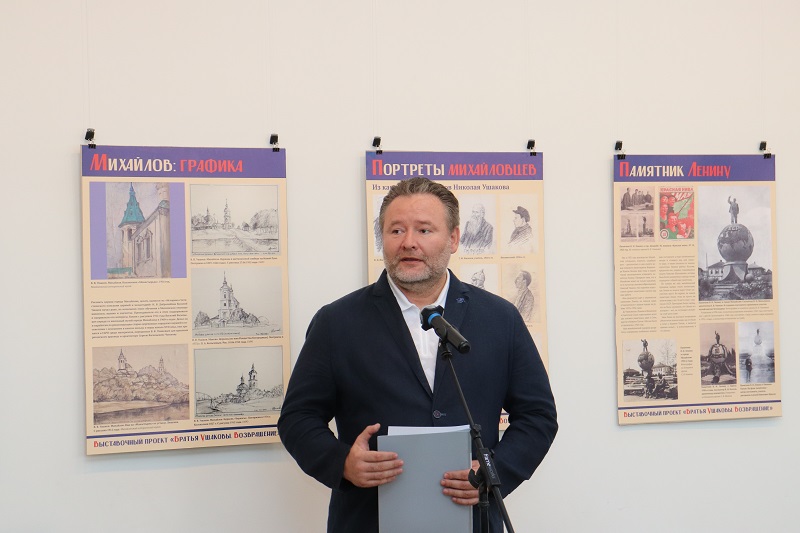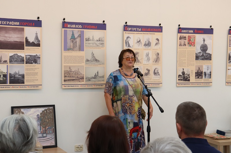 Начальник Государственной инспекции по охране объектов культурного наследия Рязанской области Михаил Михайлович Дорофеев поблагодарил библиотеку за поддержку общественно значимого начинания краеведов, и подчеркнул, что история старинного рязанского города Михайлова – одна из интереснейших страниц в истории всей области, и в ней велика роль художников, педагогов, краеведов братьев Ушаковых.