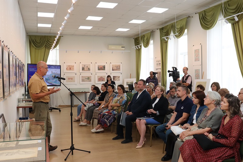 С приветственным словом выступил Анатолий Анатольевич Оксенюк, заместитель директора по научной работе Государственного научно-исследовательского музея архитектуры имени А.В. Щусева — одного из крупнейших в мире научных центров по изучению и популяризации архитектурного наследия, с фондом в более чем 800 000 единиц. Он рассказал, что музей, хранящий планы и обмеры усадьбы Красное, рисунки, фотографии Василия Ушакова, всегда искренне рад региональным проектам, позволяющим раскрыть фонды музея для жителей большой страны, показать в малых и больших городах те произведения искусства, которые были в них созданы.