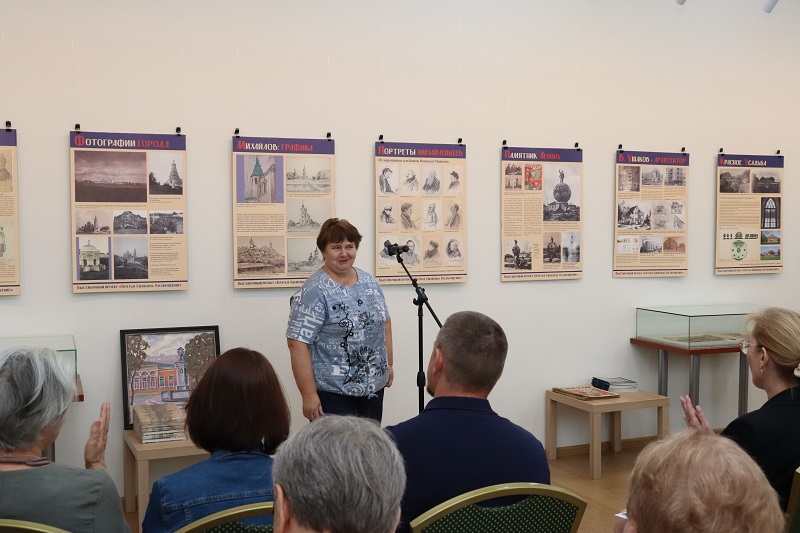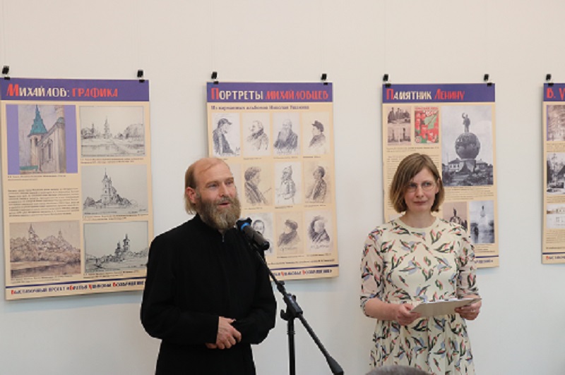 Обзорную экскурсию по выставке провели авторы интернет-проекта «Продвинутое прошлое города Михайлова», краевед-исследователь Сергей Владимирович Нехаев и Полина Яковлевна Лихачева, ведущий редактор редакционно-информационного центра РОУНБ им. Горького.