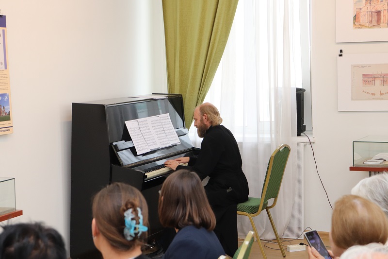 Прозвучали выступления и слова благодарности внуков и правнуков Николая Ушакова: шахматного педагога, матери четверых детей Наталии Николаевны Ушаковой, хранительницы большого семейного архива Ушаковых и семей священнослужителей Лебедевых и Грацинских; Александра Николаевича Ушакова, много сделавшего для сохранения памяти о своих предках в Михайлове; протодиакона Дмитрия Львовича Ушакова, композитора, члена Союза композиторов России, преподавателя Воронежской Государственной академии искусств и Воронежской духовной семинарии, который подарил всем гостям незабываемые минуты, виртуозно исполнив на фортепиано произведения Рахманинова и Римского-Корсакова, не раз звучавшие в старину на семейных вечерах художника Николая Ушакова и его супруги, музыкального педагога Марии Васильевны Ушаковой (Лебедевой) – и она, и ее правнук блестяще окончили в Московскую консерваторию в начале и конце прошлого века.