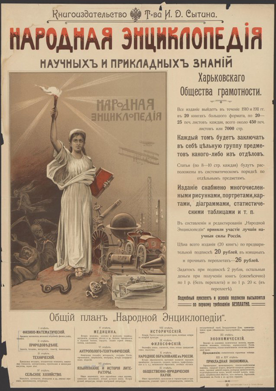 Среди дореволюционных энциклопедических изданий привлекает внимание «Народная энциклопедия научных и прикладных знаний», созданная по инициативе Харьковского общества распространения в народе грамотности. Издание вышло в 14 томах (21 книга) в 1910–1912 гг.