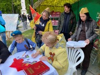 Мастер-класс по изготовлению Георгиевской броши стал прекрасной возможностью для самых юных посетителей проявить себя и создать памятный сувенир своими руками. Волонтеры культуры помогали всем желающим сделать уникальную брошь, которая станет символом памяти и уважения к героям Великой Отечественной войны.