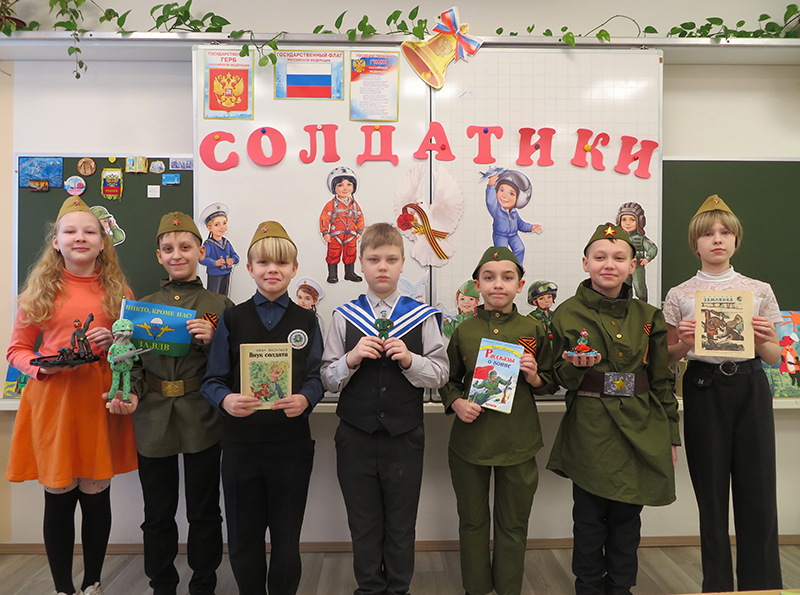 Школьники рассказали о том, какими качествами должен обладать российский солдат, узнали об истории Дня защитника Отечества, о роли армии в защите страны и о том, какие виды войск есть в Российской армии.