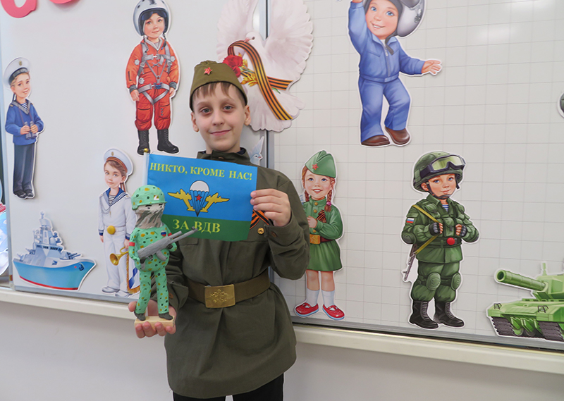 Учащиеся специально для программы подготовили солдатиков, выполненных из различных материалов. Поделки получились красивыми и праздничными, а ребята приложили усилия и фантазию.