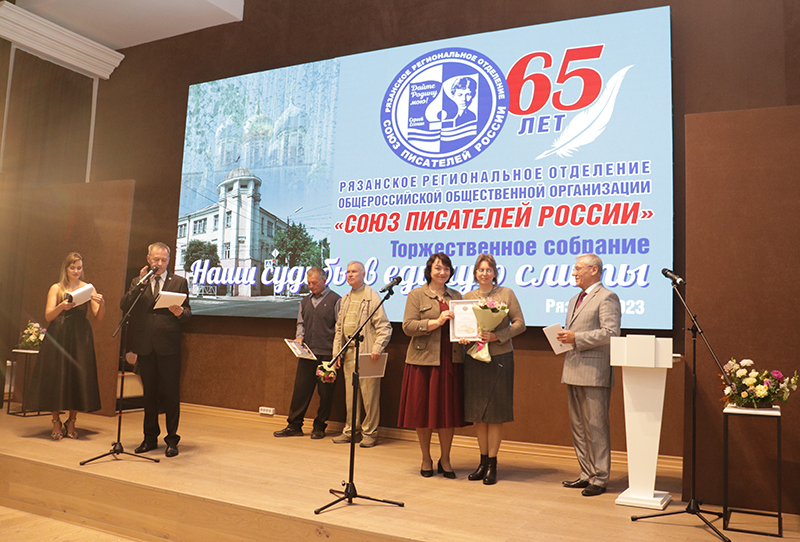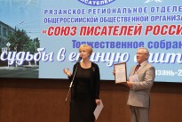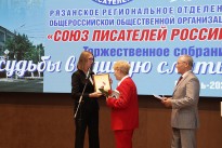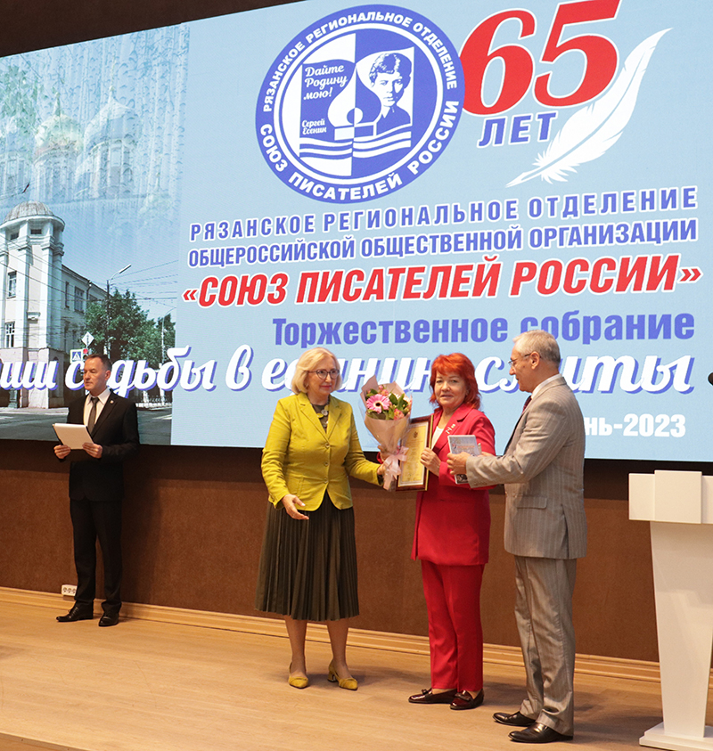 Рязанское региональное отделение Союза писателей России занимает видное место в культурном пространстве Рязанской области. Юбилярам вручили награды депутат Рязанской областной Думы, заместитель председателя Комитета Рязанской областной Думы по экологии и природопользованию Татьяна Анатольевна Баринова и глава муниципального образования, председатель Рязанской городской Думы Татьяна Николаевна Панфилова.