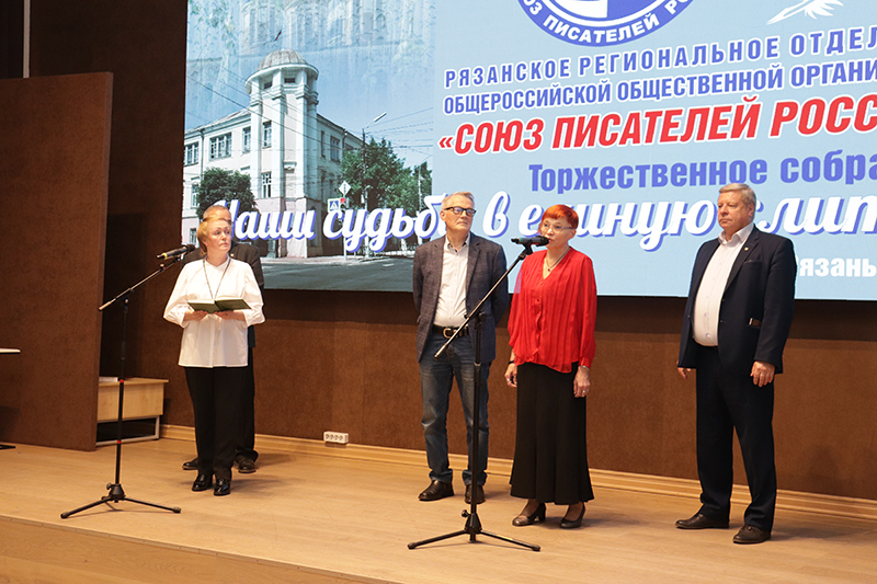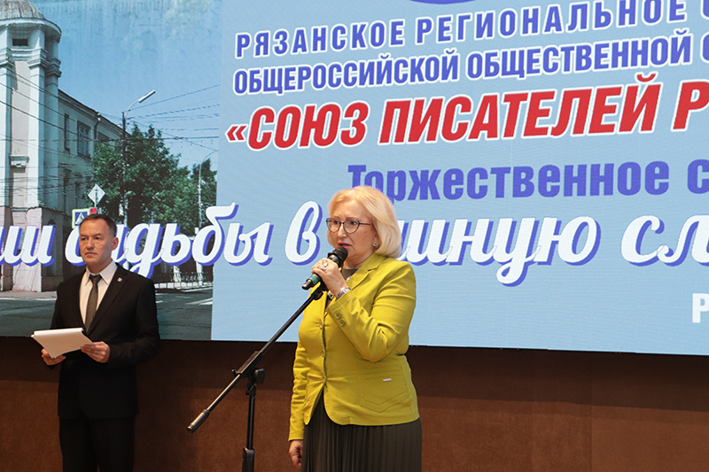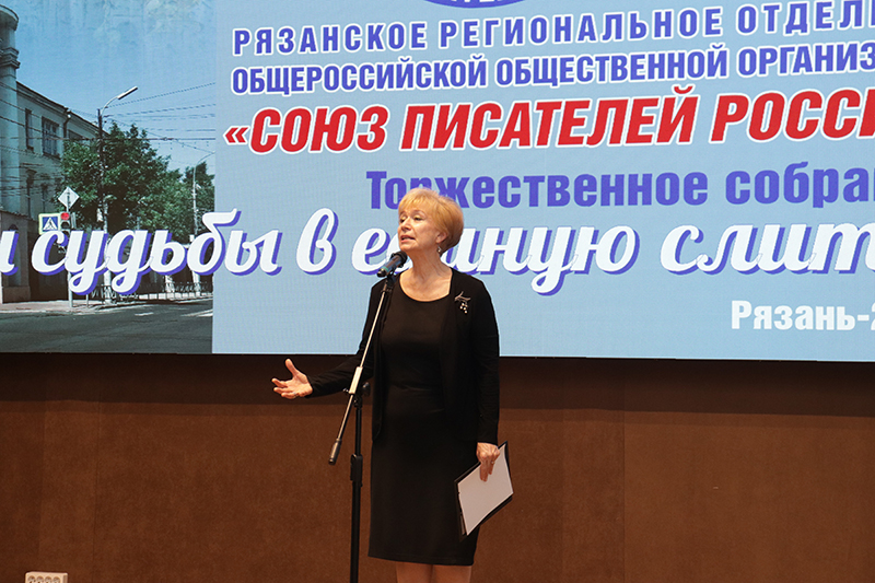 Директор библиотеки имени Горького, председатель Общественной палаты Рязанской области, заслуженный работник культуры РФ Наталья Гришина тепло поздравила рязанских писателей с юбилеем. Она отметила, что за годы работы рязанская писательская организация по-прежнему верна тем заветам и традициям, которые оставили наши великие соотечественники.