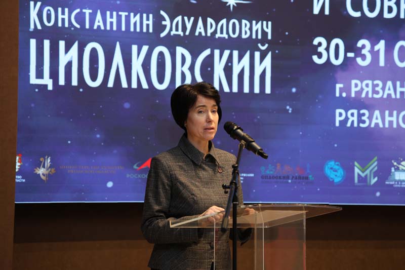 Директор библиотеки имени Горького, председатель Общественной палаты Рязанской области, заслуженный работник культуры Российской Федерации, почетный гражданин Рязанской области Наталья Николаевна Гришина в своем выступлении рассказала о просветительской работе библиотеки, связанной с именами родоначальника русского космизма Николая Федоровича Федорова и основоположника современной космонавтики и ракетостроения Константина Эдуардовича Циолковского. В библиотеке проходят выставочные проекты, публичные лекции, библиоуроки, имена знаменитых ученых-космистов звучат на конференциях и форумах. Так, к 165-летию К.Э. Циолковского 16 сентября 2022 года в «Горьковке» прошла секция «Творческое наследие К.Э. Циолковского» Всероссийской научно-практической конференции «Наследие К.Э. Циолковского и современность», в рамках мероприятия состоялось открытие выставочного проекта «Гражданин Вселенной», реализованного в партнерстве с музеем К.Э. Циолковского в селе Ижевское и музеем космонавтики школы № 16 г. Рязани. С 2023 года на базе библиотеки действует Школа волонтеров науки Рязанской области «Внуки Циолковского». 29 мая 2024 года торжественно открылись XXI Международные научные чтения, посвященные 195-летию со дня рождения Н.Ф. Федорова. В дни чтений в библиотеке начал работу выставочный проект «Николай Федоров и русский космизм», партнерами которого выступили Российская государственная библиотека и библиотека № 180 имени Н.Ф. Федорова г. Москвы при поддержке Рязанской организации Союза художников России и Рязанского государственного областного художественного музея имени И.П. Пожалостина. Это лишь малая часть мероприятий, организованных библиотекой в партнерстве с другими учреждениями, по популяризации космонавтики и русского космизма, наследия К.Э. Циолковского и Н.Ф. Федорова.