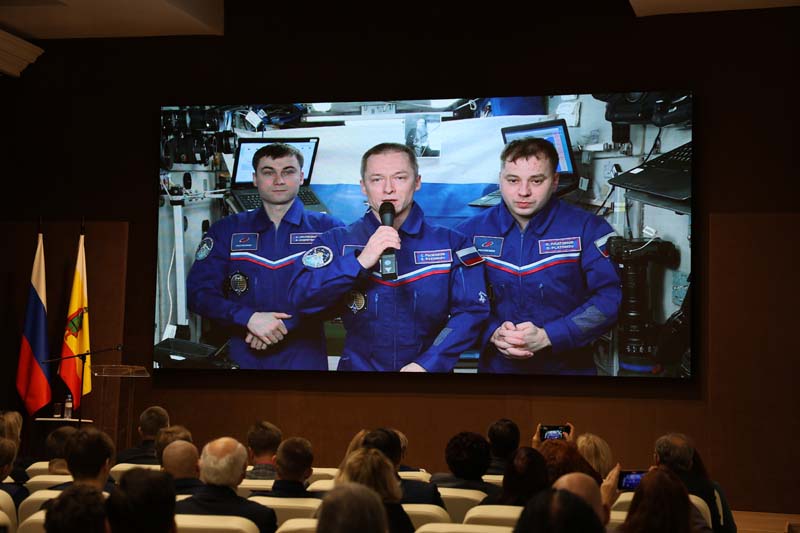 Для участников конференции прозвучало видеоприветствие с борта Международной космической станции от действующего экипажа в составе космонавтов Сергея Николаевича Рыжикова, Алексея Витальевича Зубрицкого и Олега Владимировича Платонова.