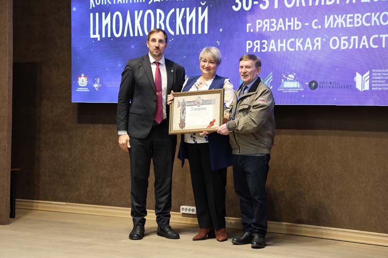 Николай Николаевич Медведков, директор Музея К.Э. Циолковского в селе Ижевское, председатель Совета Рязанской региональной организации Общероссийской общественной организации «Федерация космонавтики России», руководитель благотворительного фонда «Наследие К.Э. Циолковского и современность», член Союза архитекторов России, член Союза машиностроителей России, наградил почетной грамотой фонда летчика-космонавта Российской Федерации, Героя Российской Федерации Алексея Николаевича Овчинина; главного специалиста отдела технической подготовки и проектирования деятельности космонавтов РКК «Энергия» имени С.П. Королева, академика Российской академии космонавтики имени К.Э. Циолковского, правнука Константина Эдуардовича Циолковского Сергея Николаевича Самбурова; директора Рязанской областной библиотеки имени Горького Наталью Николаевну Гришину; главу администрации муниципального образования – Спасский муниципальный район Рязанской области Нину Васильевну Соломонову и других.