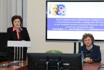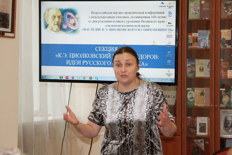В Центре краеведения работала секция «К.Э. Циолковский и Н.Ф. Федоров: идеи русского космизма». Содержательные доклады представили наши гости: Анастасия Георгиевна Гачева, доктор филологических наук, внештатный сотрудник ИМЛИ РАН; Людмила Павловна Майорова, заведующая отделом научной биографии Мемориального дома-музея К.Э. Циолковского в г. Калуге; Борис Георгиевич Режабек, кандидат биологических наук, руководитель общественного Института ноосферных разработок и исследований. О постулатах космической философии Циолковского рассказала в своем видеодокладе Вера Ильинична Алексеева, кандидат философских наук, сотрудник Государственного музея истории космонавтики имени К.Э. Циолковского (г. Калуга).