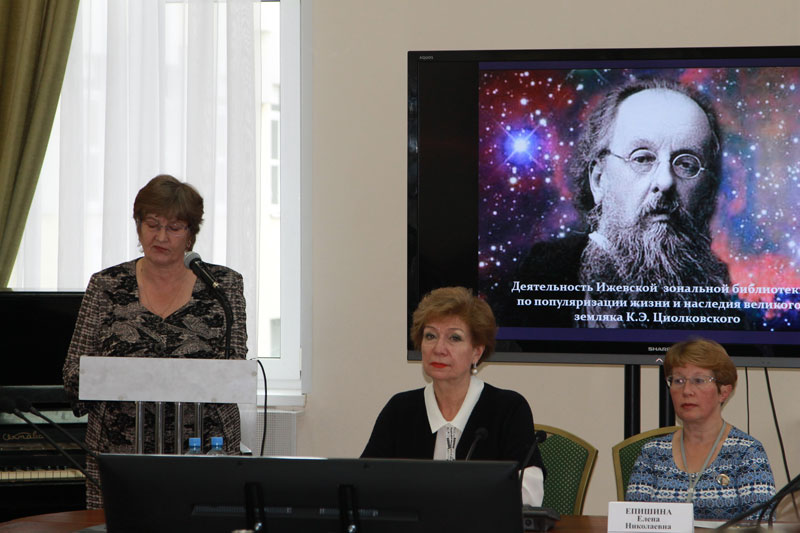 Программа секции включала сообщения сотрудников библиотек и музеев области о популяризации научного наследия К.Э. Циолковского. О своем опыте рассказали Наталья Викторовна Лусникова, ведущий библиограф Сасовской центральной библиотеки, Нина Александровна Иншутина, заведующая Ижевской библиотекой Спасского муниципального района, Наталья Михайловна Семихина, заведующая Лашманской сельской библиотекой Касимовского муниципального района. Заведующая сектором библиотеки имени Горького Елена Николаевна Епишина рассказала о новых проектах, связанных с юбилеем К.Э. Циолковского.