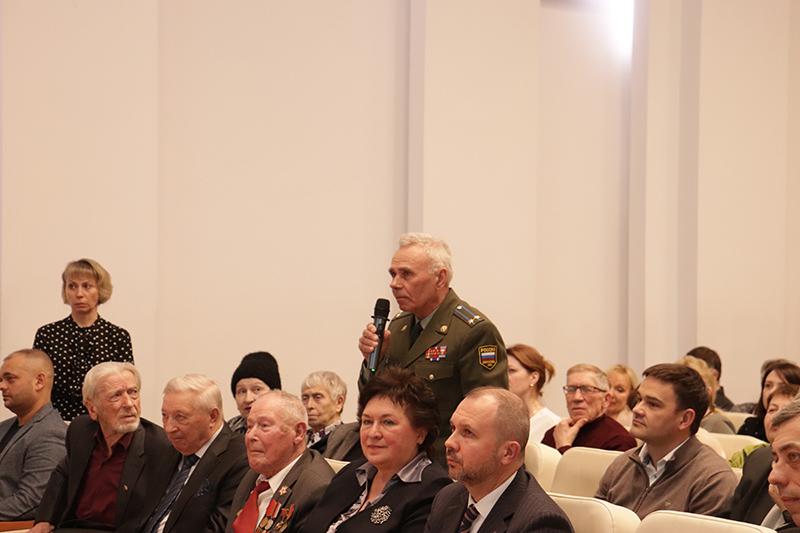 Волнующие всех вопросы о сохранении исторической правды, о денацификации и демилитаризации, о создании наиболее полной энциклопедии Великой Отечественной войны прозвучали от Александра Александровича Селиванова, директора филиала Российского общества «Знание» в Рязанской области, от ветерана войны в Афганистане, подполковника ВДВ Николая Викторовича Пешкова, от первого заместителя главного редактора газеты «Рязанские ведомости» Ирины Владимировны Сизовой.
