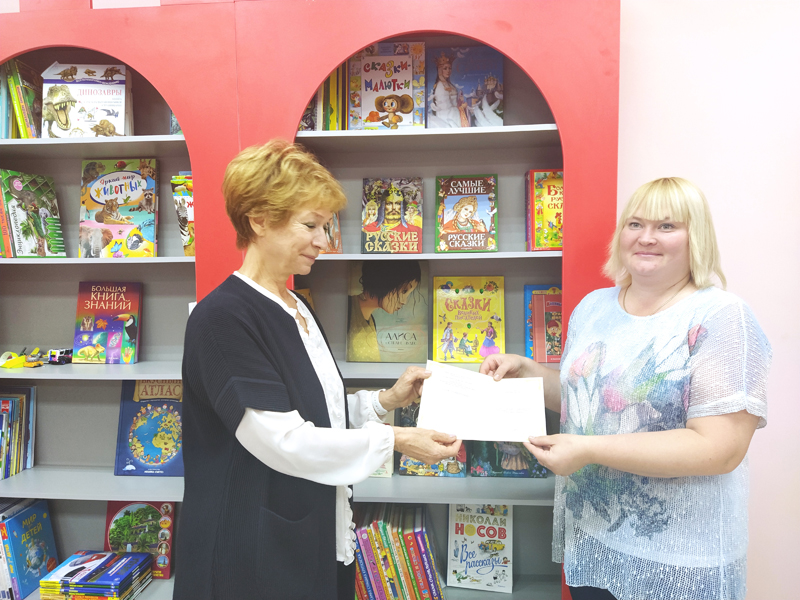 В заключение Н.Н. Гришина вручила свидетельство о повышении квалификации ведущему библиотекарю детской библиотеки В.В. Тепловой: курсы в дистанционном режиме закончились вчера.