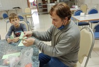 Наши маленькие друзья продолжили знакомиться с миром оригами. Для них были подготовлены и проведены мастер-классы по изготовлению кузнечика, а также ребята сделали значки в виде кошек и планет.
