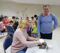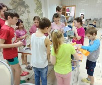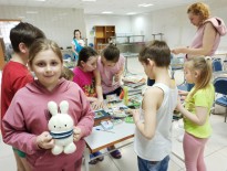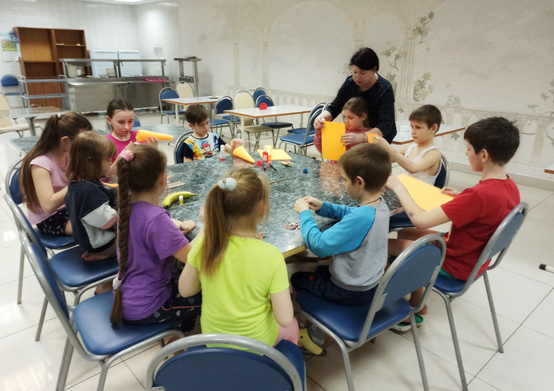 Для детей был подготовлен увлекательный мастер-класс по изготовлению объемной игрушки. В этот раз это был улыбчивый оранжевый жираф.