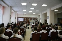 Александр Николаевич зачитал молодежи несколько писем от друзей из Донецкой Народной Республики. Прочел свои новые стихи, в том числе на военную тему. Поэт говорил и об учебниках истории, и о господстве в родном русском языке иностранных слов.