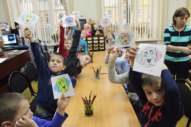После встречи с Настей дошкольники участвовали в литературной викторине, смотрели веселый клип про четвероногих, проявив фантазию, раскрашивали мордочки собак на заготовленных шаблонах бумаги.