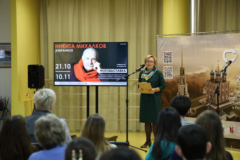 21 октября в день 80-летия режиссера, председателя Союза кинематографистов России, народного артиста Российской Федерации Никиты Сергеевича Михалкова в Гербовом зале Рязанской областной универсальной научной библиотеки имени Горького в рамках регионального кинофорума «Честное кино» состоялось торжественное открытие фотовыставки «Никита Михалков. Избранное».