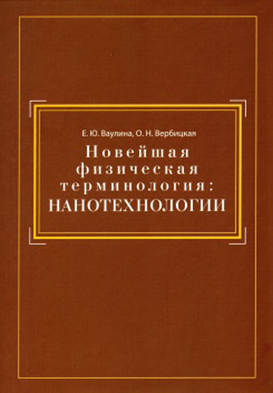 Ваулина Е. Ю. Новейшая физическая терминология: нанотехнологии : краткий словарь / Е. Ю. Ваулина, О. Н. Вербицкая ; М-во образования и науки Российской Федерации, Санкт-Петербургский гос. ун-т. – Санкт-Петербург : Филологический факультет СПбГУ, 2014. – 352 с. – (Слова,которые следует знать).
