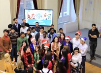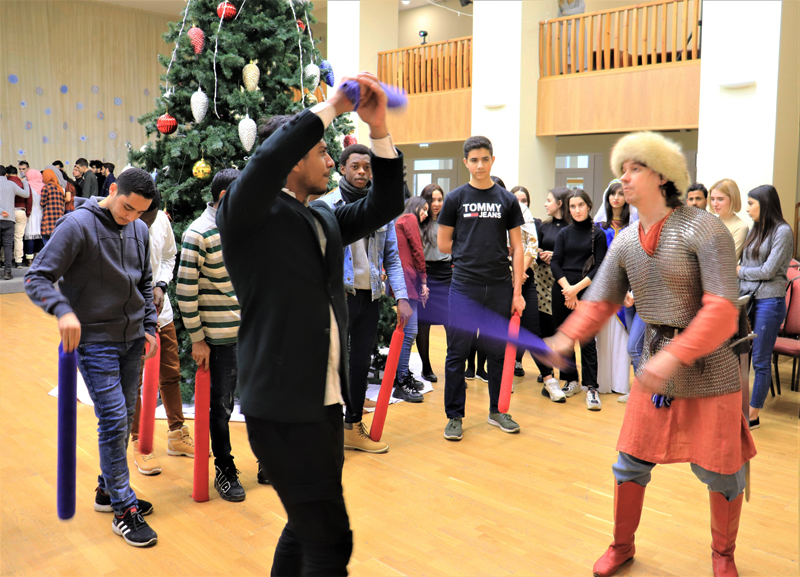 В рамках проекта «Новогодний калейдоскоп» сотрудники Центра МИР И Я подготовили для гостей специальную новогоднюю программу, которая в игровой форме познакомила их с культурой и традициями нашего региона. Молодежь из ближнего и дальнего зарубежья участвовала в традиционных русских играх и забавах вместе с героями русских народных и литературных сказок.