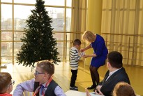 Дети пришли на праздник нарядные, веселые в предвкушении чудес. И их надежды оправдались. С самого начала они наперебой читали стихи, посвященные встрече Нового года, получая за исполнение Грамоту Академии новогодних затей от Деда Мороза и сувенир.