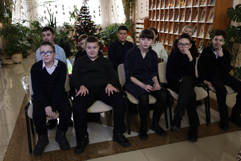 Уже не впервые приходят в гости к библиотекарям воспитанники школы-интерната, на этот раз им посчастливилось увидеть своими глазами красиво украшенную к новогодним праздникам библиотеку, послушать выступление президента России Владимира Путина во время прямой линии со страной, поучаствовать в праздничной фотосессии.