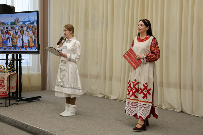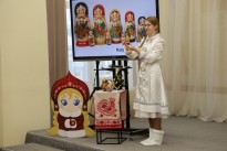 Ведущие в образах Снежанушки и Снегурочки предложили гостям совершить три волшебных шага к знакомству с традициями русского Нового года: открыть символы, поделиться радостью и почувствовать дух праздника. Участники в игровой форме угадывали главные атрибуты Нового года, поздравляли друг друга на родных языках. Они познакомились с народными игрушками – матрешкой, которая воплощает образ крепкой русской семьи, и неваляшкой – символом стойкого, жизнелюбивого духа русского народа.