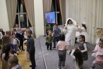В удивительном приключении ребята помогли сказочным героям Добрыне и Метелице вспомнить волшебные слова, с помощью которых Дед Мороз и Снегурочка приехали на ёлку. С большим азартом и интересом дети справились со всеми испытаниями, которые приготовила для них Баба-Яга: разгадывали загадки, танцевали, а также увидели волшебное представление фокусника. Предновогодним настроением поделились с гостями участники детского музыкального театра «Созвездие добра».