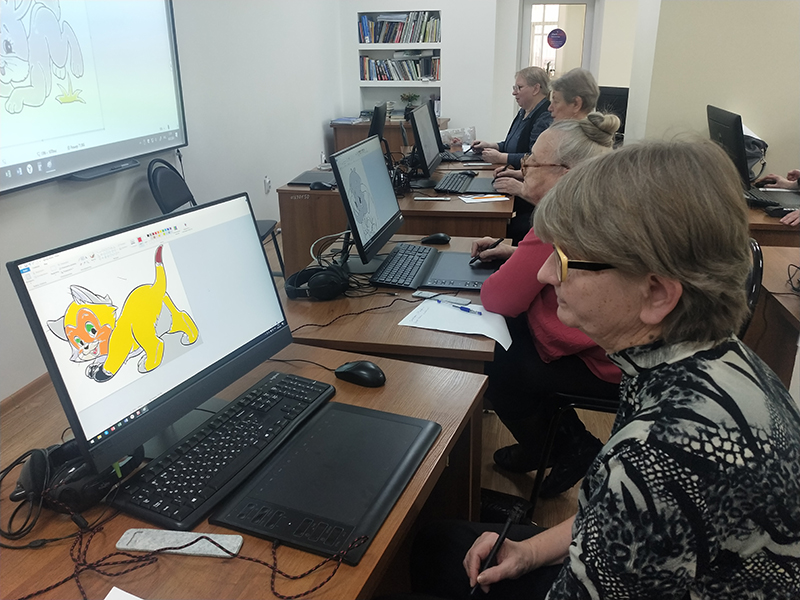 Сегодня графический планшет как новый инструмент прикосновения к жизни осваивала новая группа компьютерных пользователей старшего возраста – члены читательского объединения «Свет в окне».