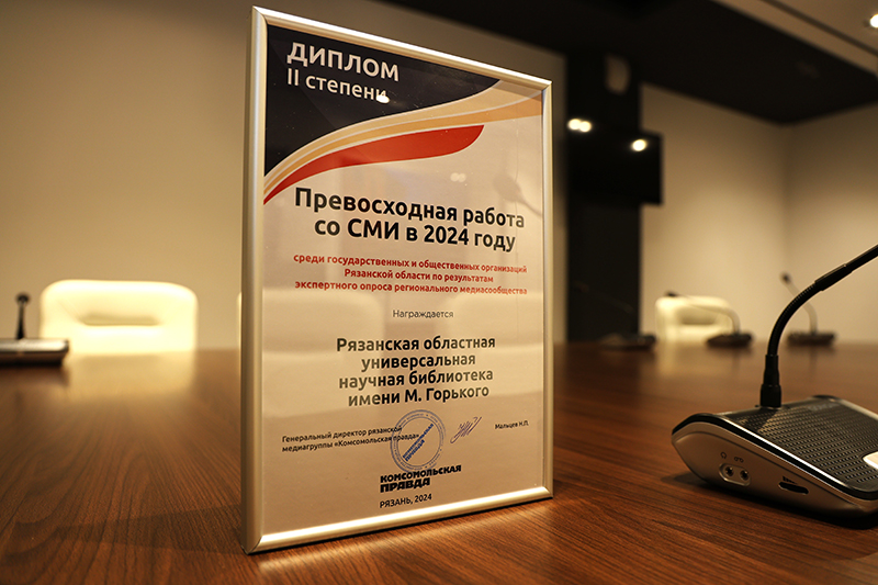 Обладателем диплома за превосходную работу со СМИ в 2024 году среди государственных и общественных организаций Рязанской области стала Рязанская областная библиотека имени Горького.