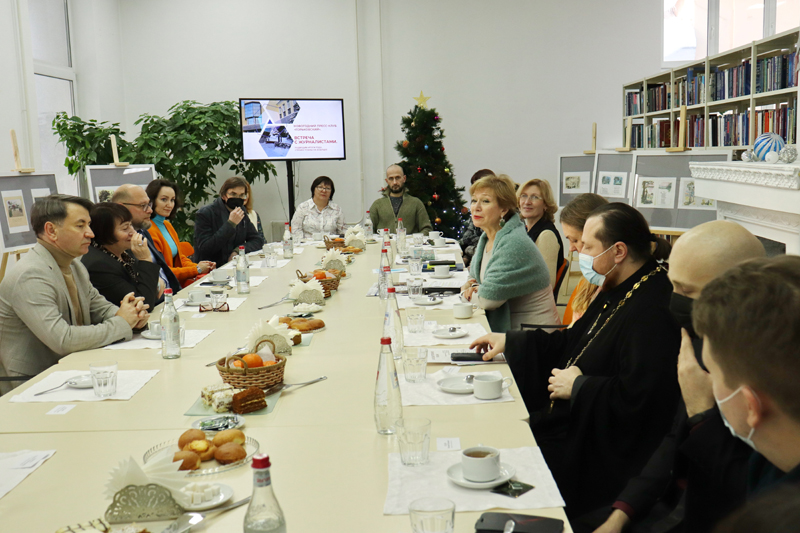 Заместитель директора библиотеки по социокультурной деятельности и связям с общественностью Ксения Александровна Чулкова рассказала о том, какие события ждут библиотеку и ее читателей в 2022 году, участники пресс-клуба обсудили перспективы сотрудничества и совместные проекты.