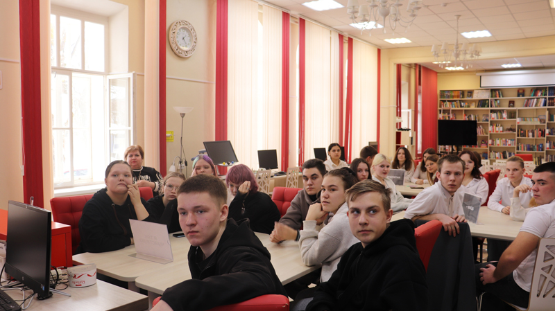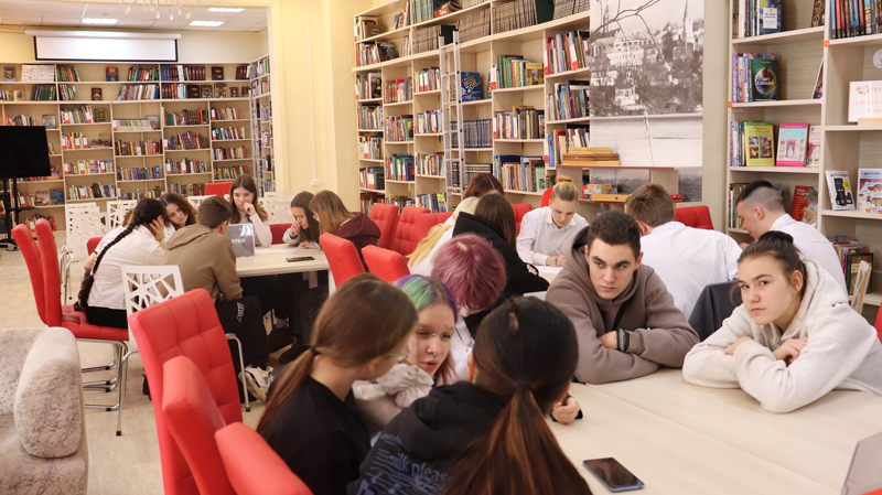 В Центральной библиотеке имени Л.А. Малюгина, в рамках цикла мероприятий образовательной лаборатории русского языка «Мыслѐте», было организовано событие для студентов нефтегазового колледжа.