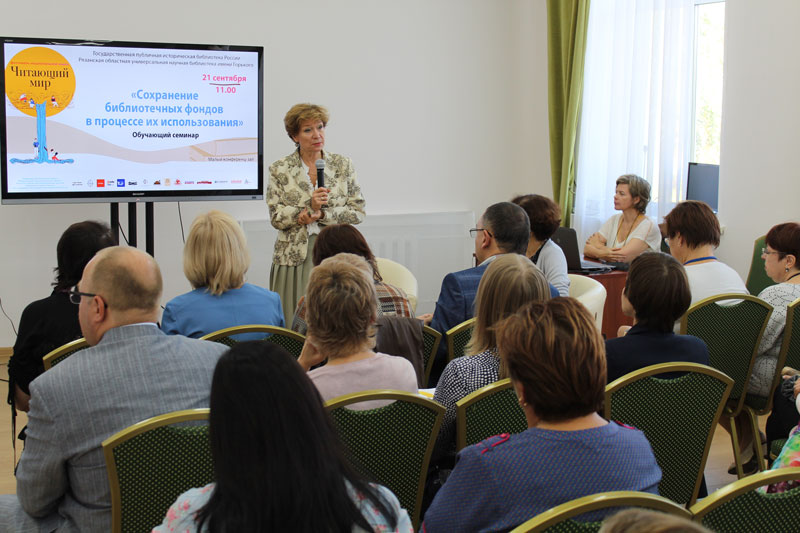 21 сентября в рамках Фестиваля национальной книги «Читающий мир» состоялся обучающий семинар «Сохранение библиотечных фондов в процессе их использования». В интернете велась прямая трансляция семинара.