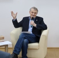 Заместитель директора по развитию библиотеки Светлана Винокурова поблагодарила писателя за многолетнее сотрудничество с библиотекой имени Горького и за книги, которые он передал в дар в ее фонд.