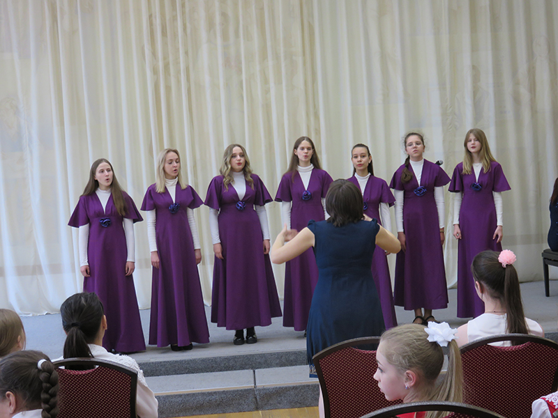 На концерте выступили хоровые коллективы школы: хор первого класса, (руководитель – Т.В. Цыганкова, концертмейстер – Е.В. Фоменко), младший хор «Капель», ансамбль старшего хора (руководитель – Н.Г. Юдаева, концертмейстер – Е.В. Фоменко) и юные солисты, исполнившие знаменитые песни композитора под аккомпанемент Е.В. Фоменко и В.Н. Былинкина.
