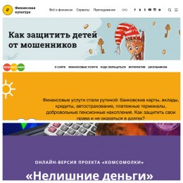 Финансовая культура – информационно-просветительский ресурс, созданный Центральным банком Российской Федерации. Сайт предназначен для широкой аудитории с разным уровнем знаний об экономике и разными финансовыми возможностями. В материалах сайта в простой форме, с некоторыми допущениями и упрощениями, разбираются ситуации, с которыми может столкнуться каждый.