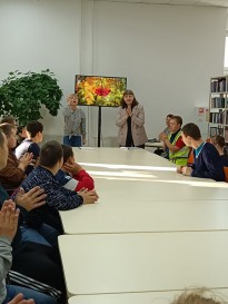 Библиотекари провели для детей интерактивную программу «Осень золотая». Ребята познакомились с осенними приметами, узнали, с какого дерева листья облетают первыми, какие животные приносят потомство в конце года, отгадали загадки, послушали веселые детские песенки, прогулялись по осеннему лесу и сделали зарядку, посмотрели мультфильм.