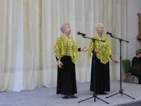 Проникновенно звучали песни в исполнении других солистов хора – Татьяны Ивашкиной, Людмилы Бабиной, Татьяны Петровичевой, Людмилы Суляевой: «Русский вальс» (А. Пахмутова), «Под луной золотой» (И. Дунаевский), «Скоро осень» (Я. Френкель), «Белый танец» (Д. Тухманов).