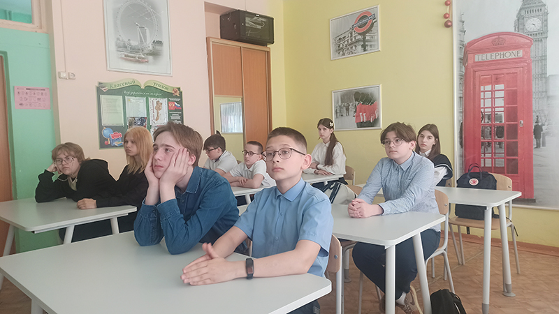Школьники с интересом смотрели кадры документальной хроники и отрывки репортажей о наших земляках.