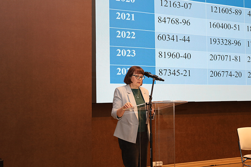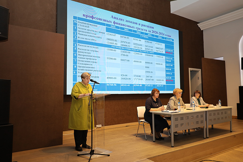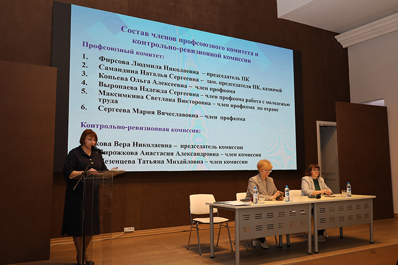 Отчет профкома за отчетный период 2020-2024 гг. представили Людмила Николаевна Фирсова, председатель профкома и Наталья Сергеевна Самандина, заместитель председателя, казначей профкома.